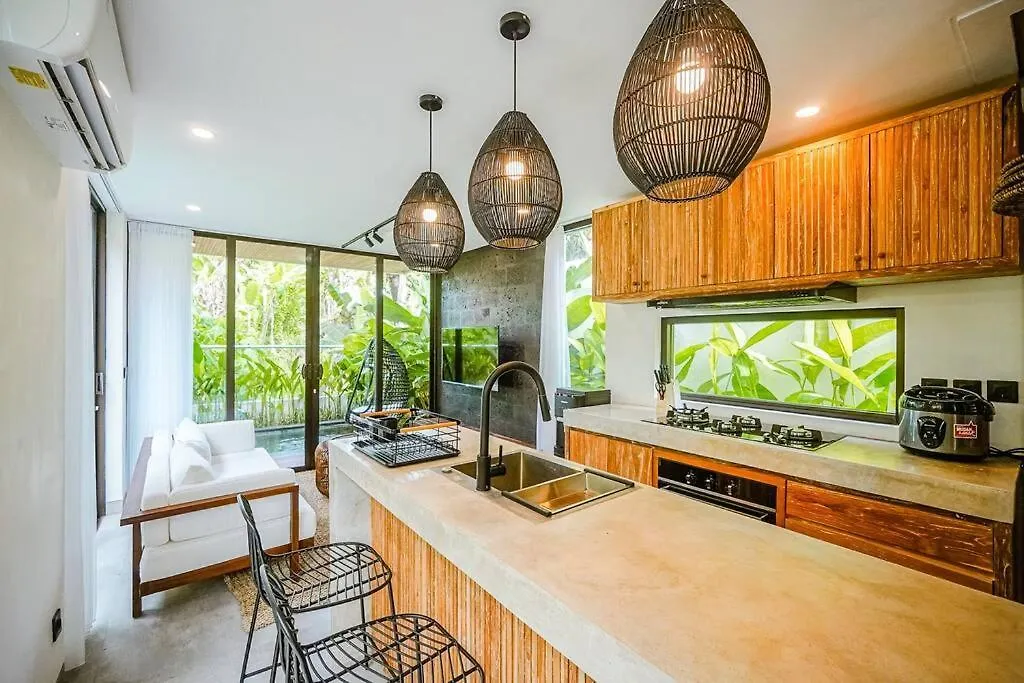 La Tiny Villa Nyanyi - Stylish Villa In Serene Location 5 Mins To Beach dispone de una cocina bien equipada equipada con hervidor eléctrico, nevera y cristalería. El aeropuerto más cercano a esta villa es internacional de Bali Denpasar, ubicado a 25 km.